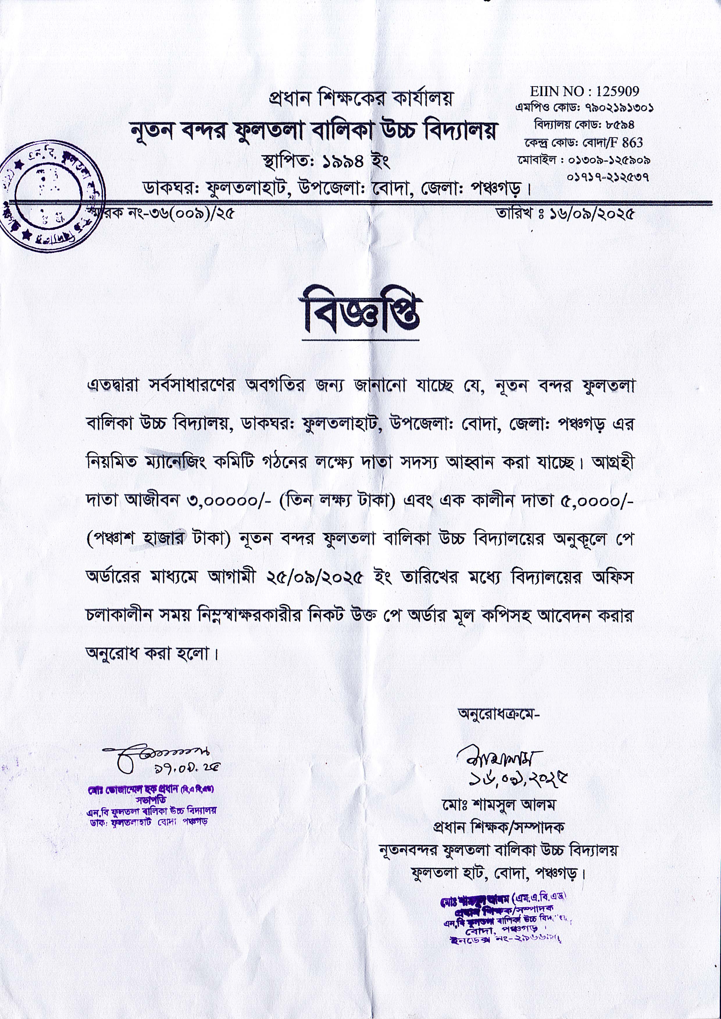 1 দাতা সদস্যের বিজ্ঞপ্তি 21-09-2025